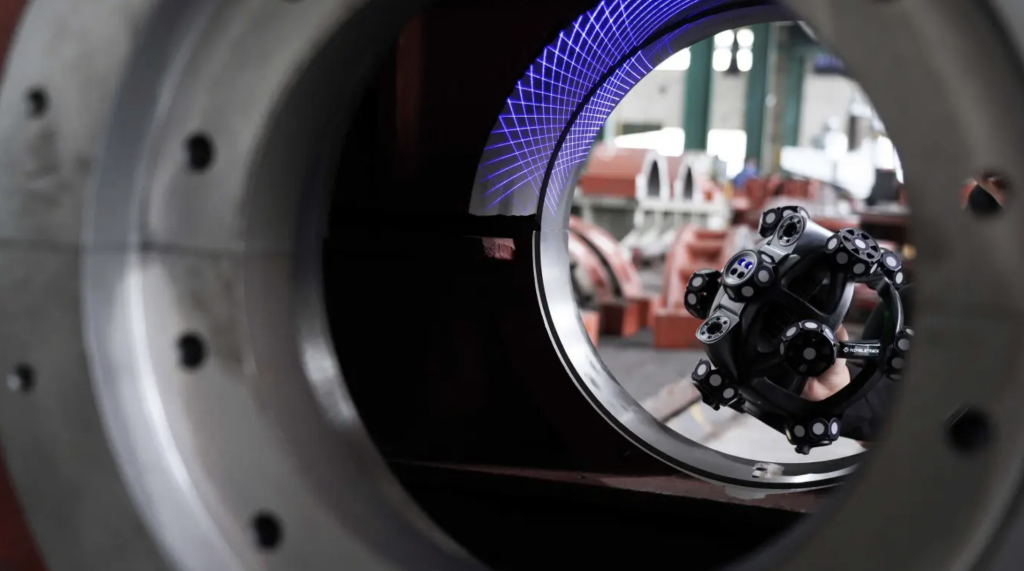 数据采集:手持扫描仪沿法兰面移动,实时获取点云数据(耗时2-5分钟);