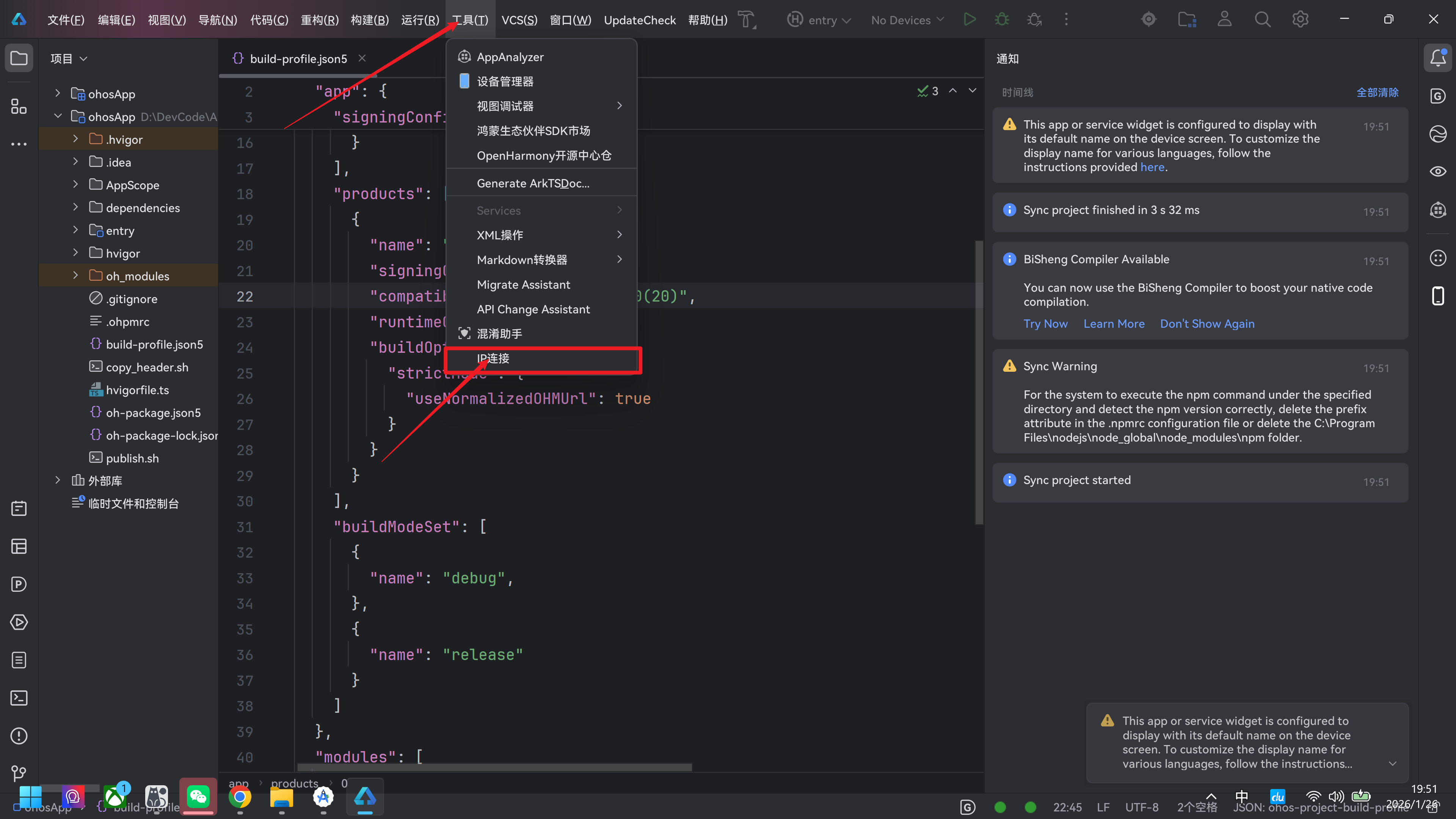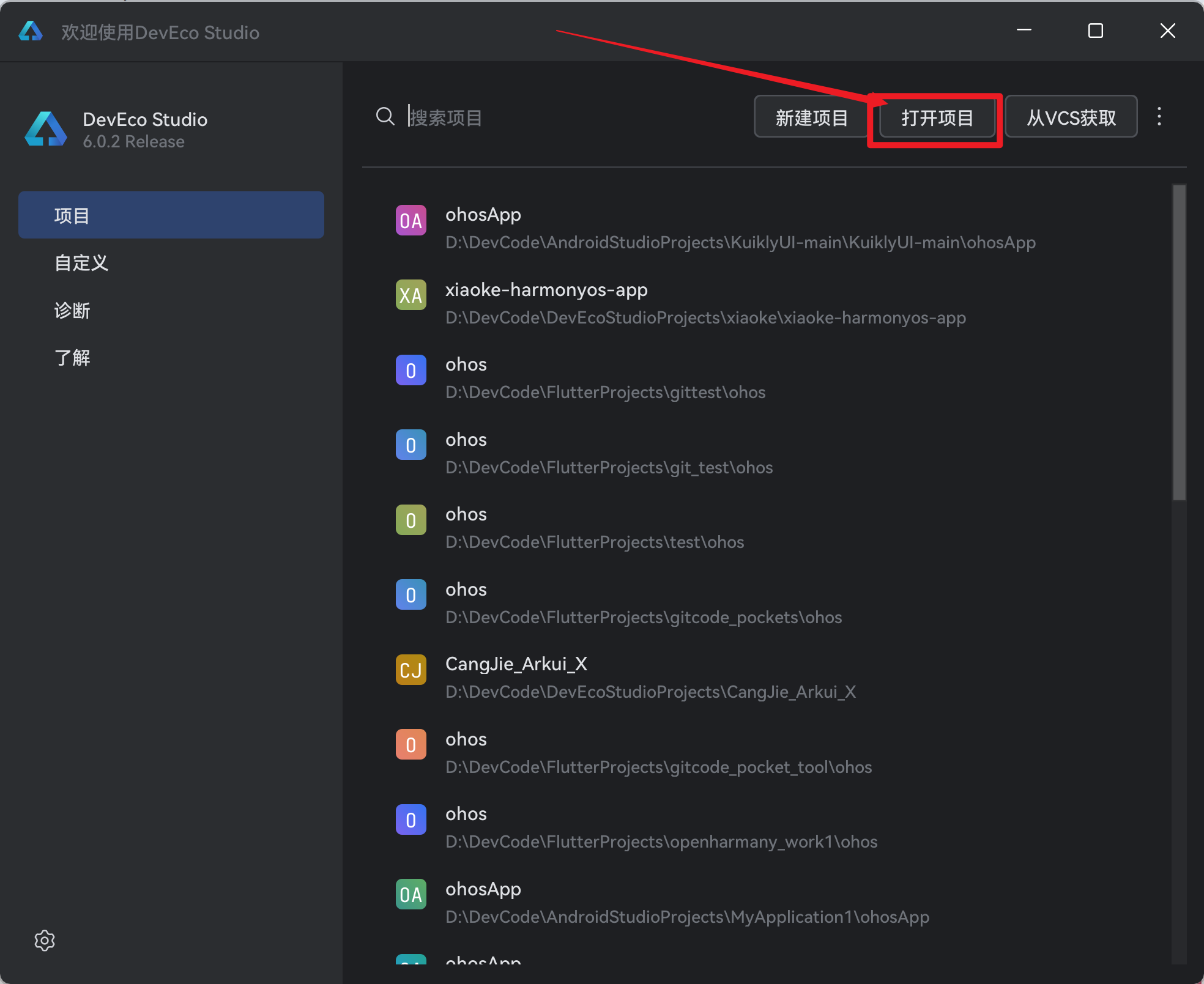 - 打开DevEco Studio