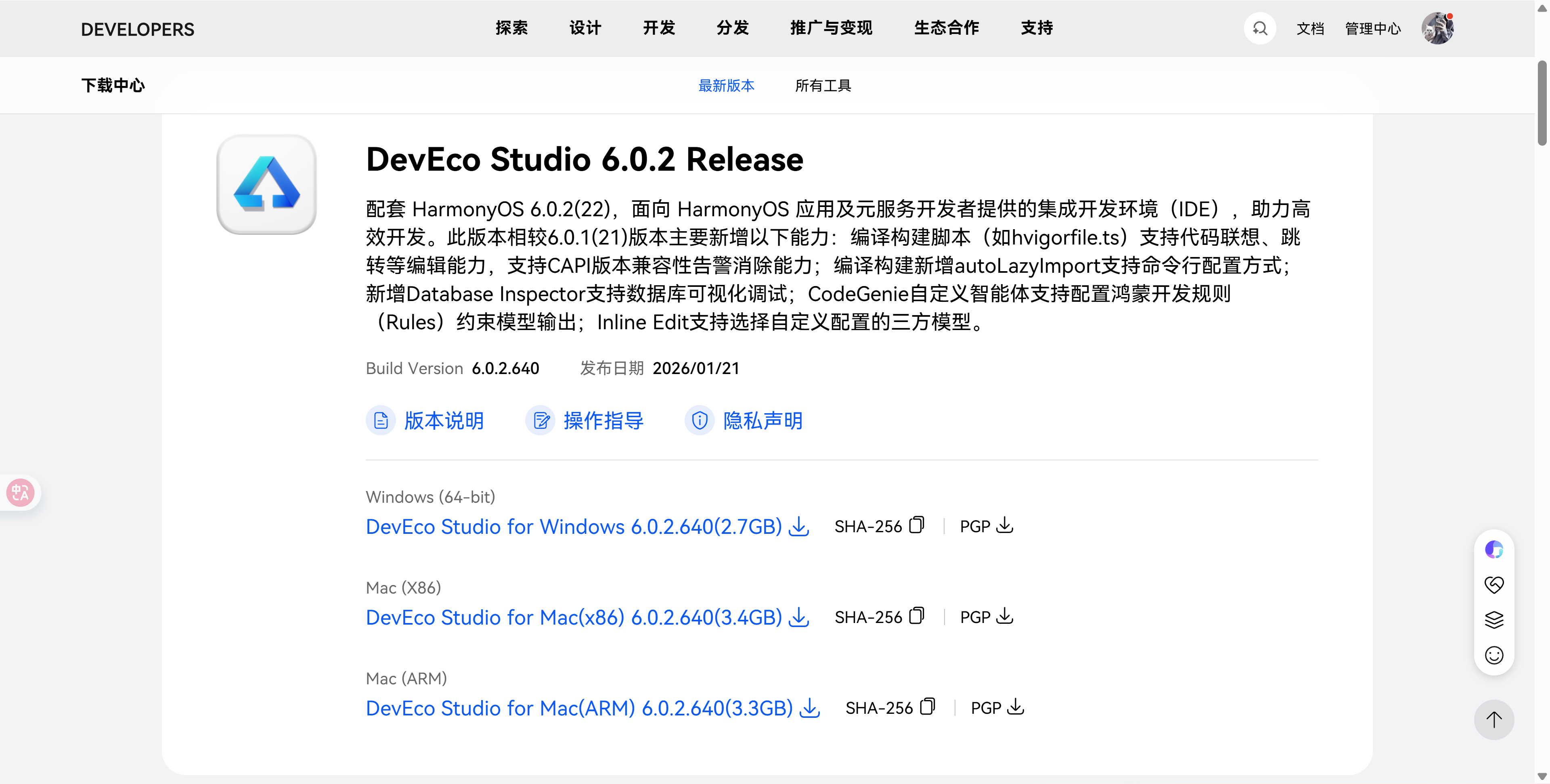 下载Windows版本的DevEco Studio,DevEco下载地址
