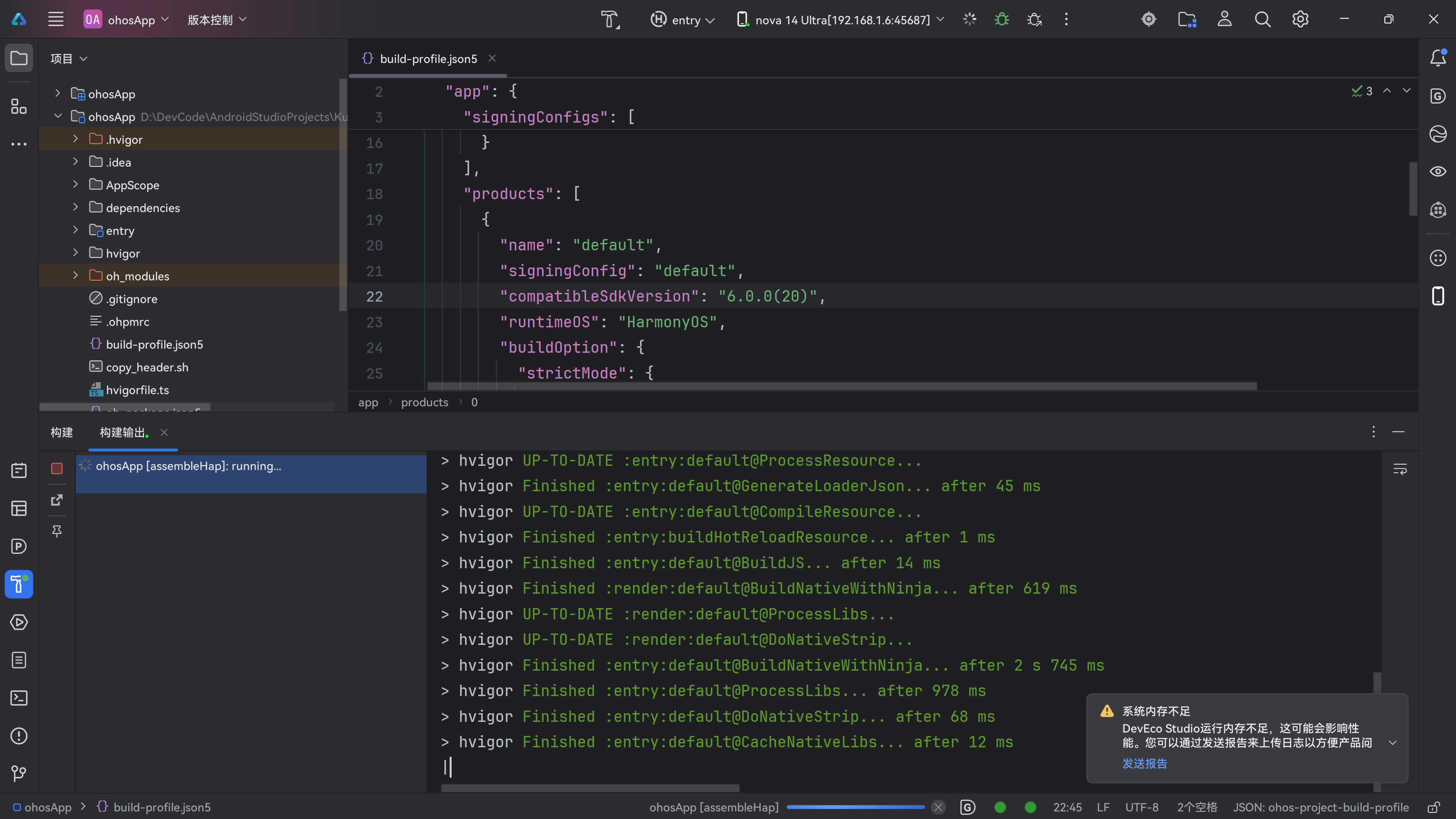 Build → Make Project - 如果构建成功,尝试运行OpenHarmony模块