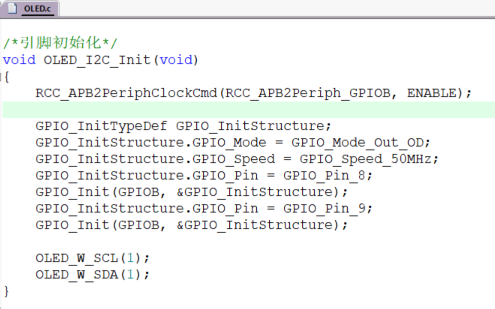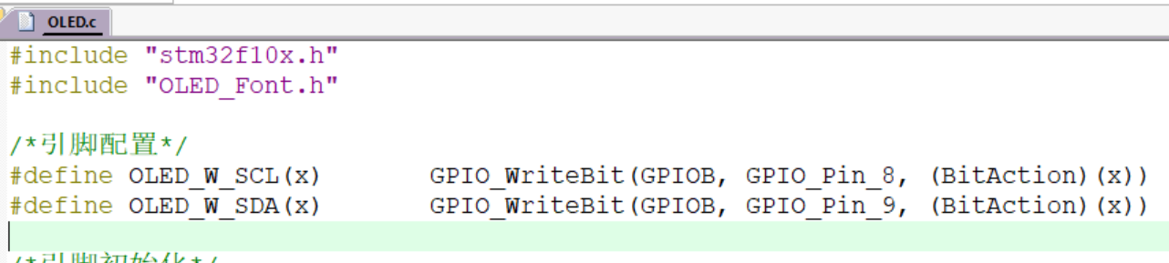 打开OLED.c文件,根据需要选择引脚,将引脚设置更改为相应引脚。