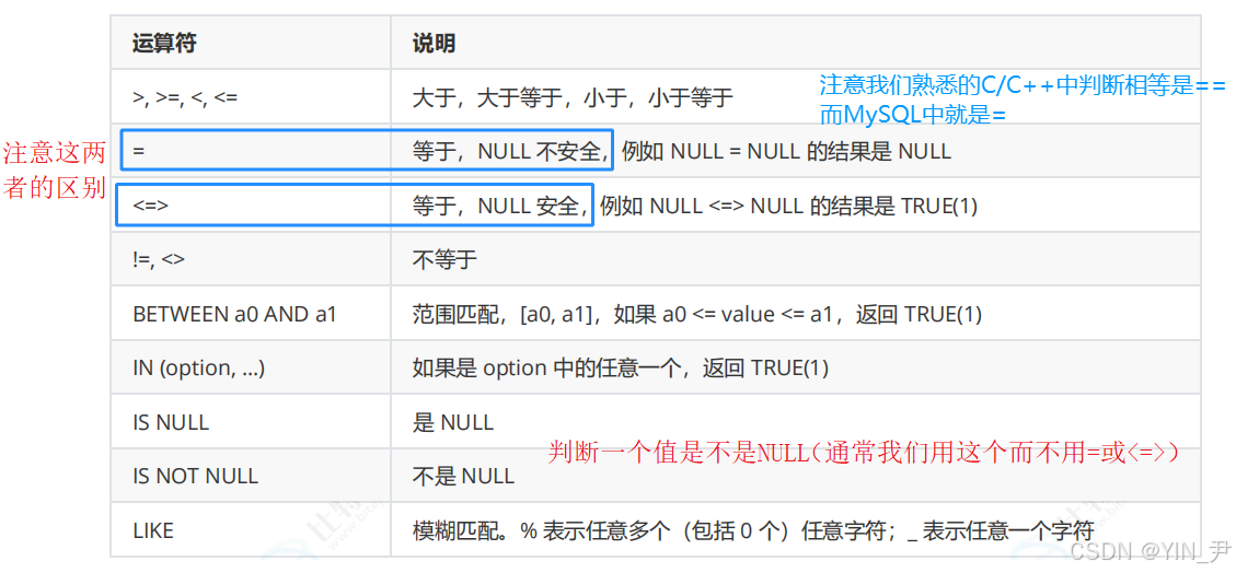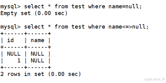 如果用=查询的话,=是null不安全的,<=>是null安全的: