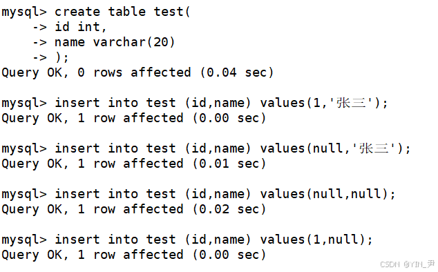 由于这里id为主键列且我们设置了auto_increment属性,所以我们不插,会默认填充递增值。