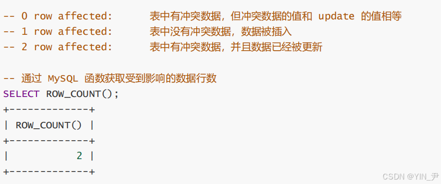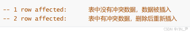 2行受影响,就表明发生了冲突,并更新了冲突行。(原来的没了,更新的插入了,所以2行受影响)