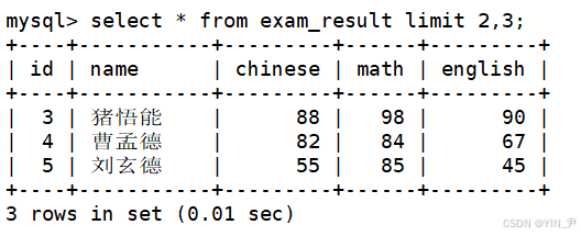 select * from exam_result limit 2,3;