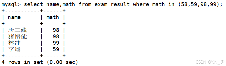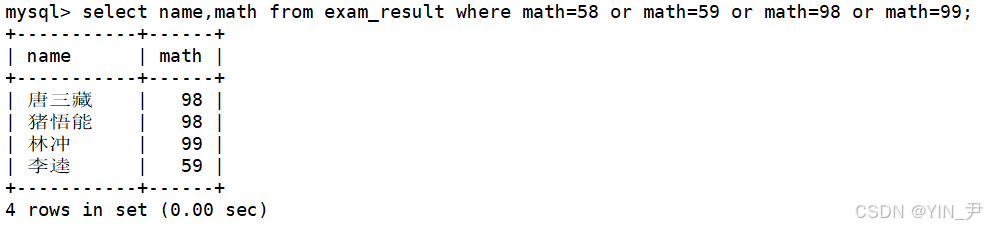 - [2.2.3 数学成绩是 58 或者 59 或者 98 或者 99 分的同学及数学成绩](#2.2.3 数学成绩是 58 或者 59 或者 98 或者 99 分的同学及数学成绩)
