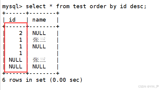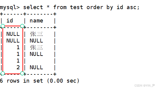 NULL 视为比任何值都小,升序出现在最上面