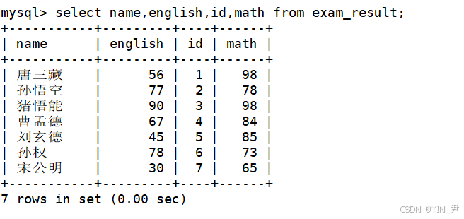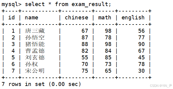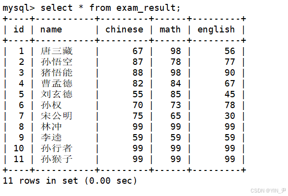 案例(下面还来看我们的exam_result表):