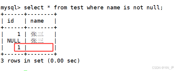 所以现在再查name为null的,肯定没有空串这一行