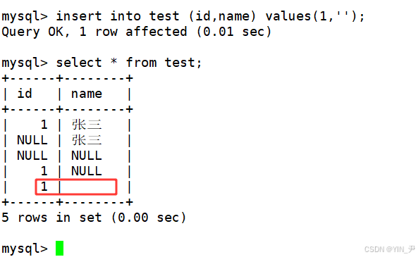 然后我来插入一条name为空串的记录