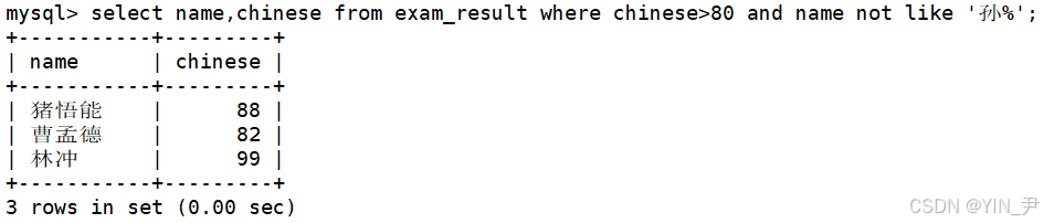 2.2.8 语文成绩 > 80 并且不姓孙的同学(AND + NOT)