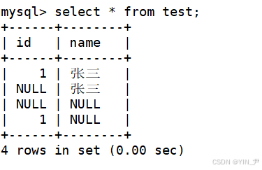直接插入(name没有主键或唯一键约束,可以重复),一行受影响