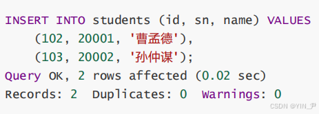 - [1.3 多行数据+全列/指定列插入](#1.3 多行数据+全列/指定列插入)