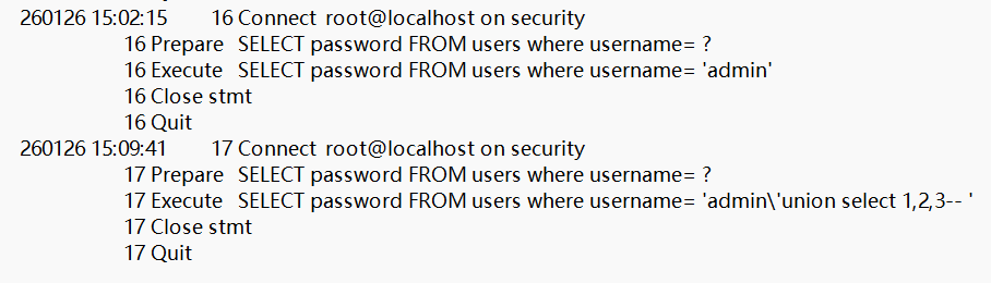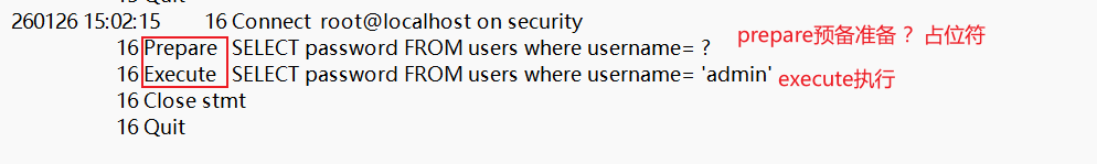 虚假的预编译:没有预编译和参数绑定,和正常的查询一样唯一不同就是将参数自动加上单引号,在底层将单双引号自动转义