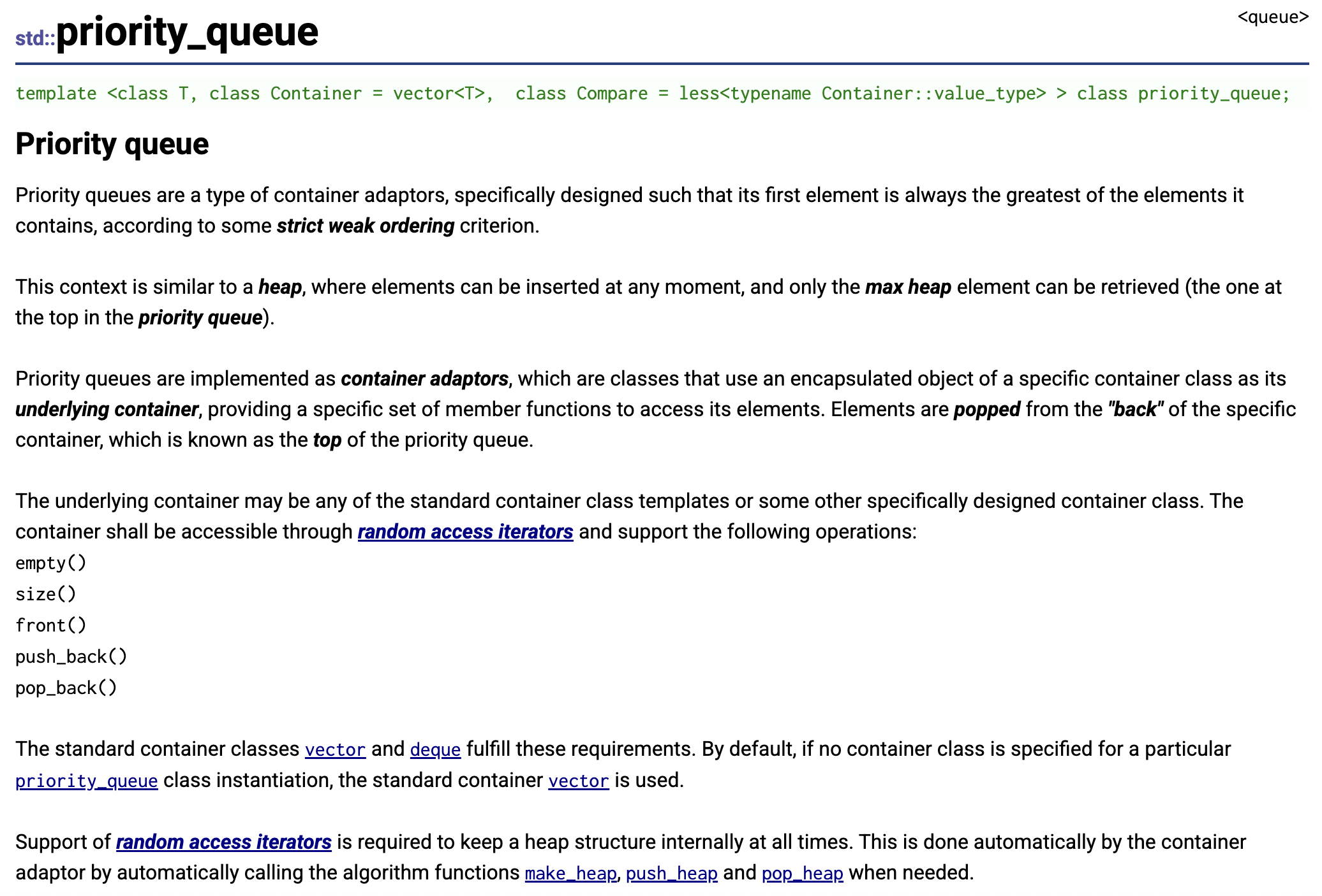PriorityQueue() : _con(), _comp() {}