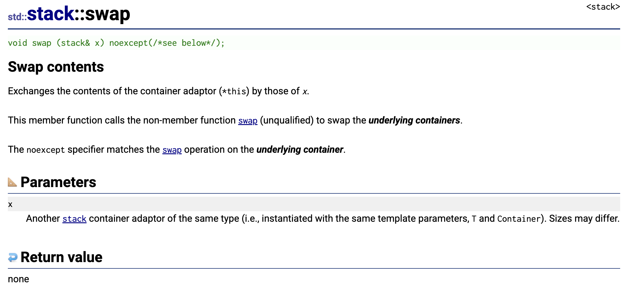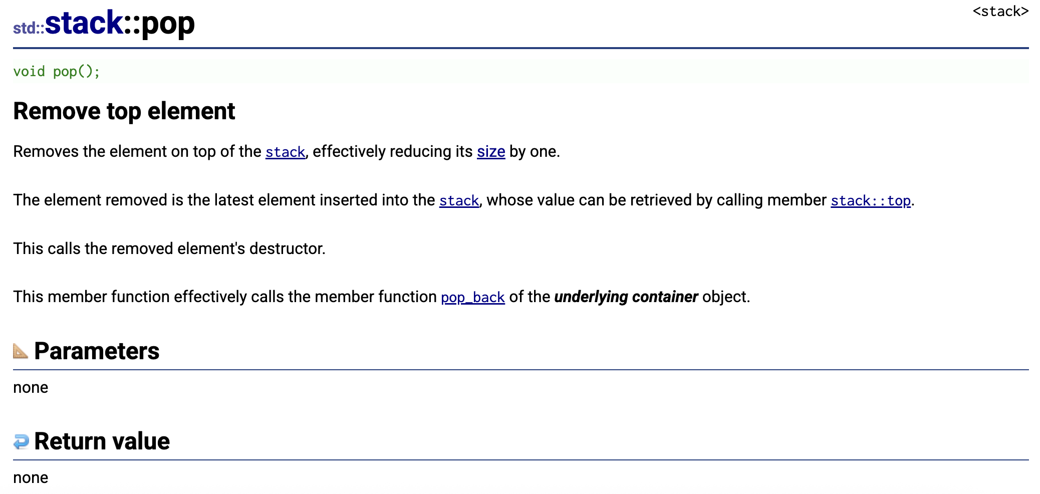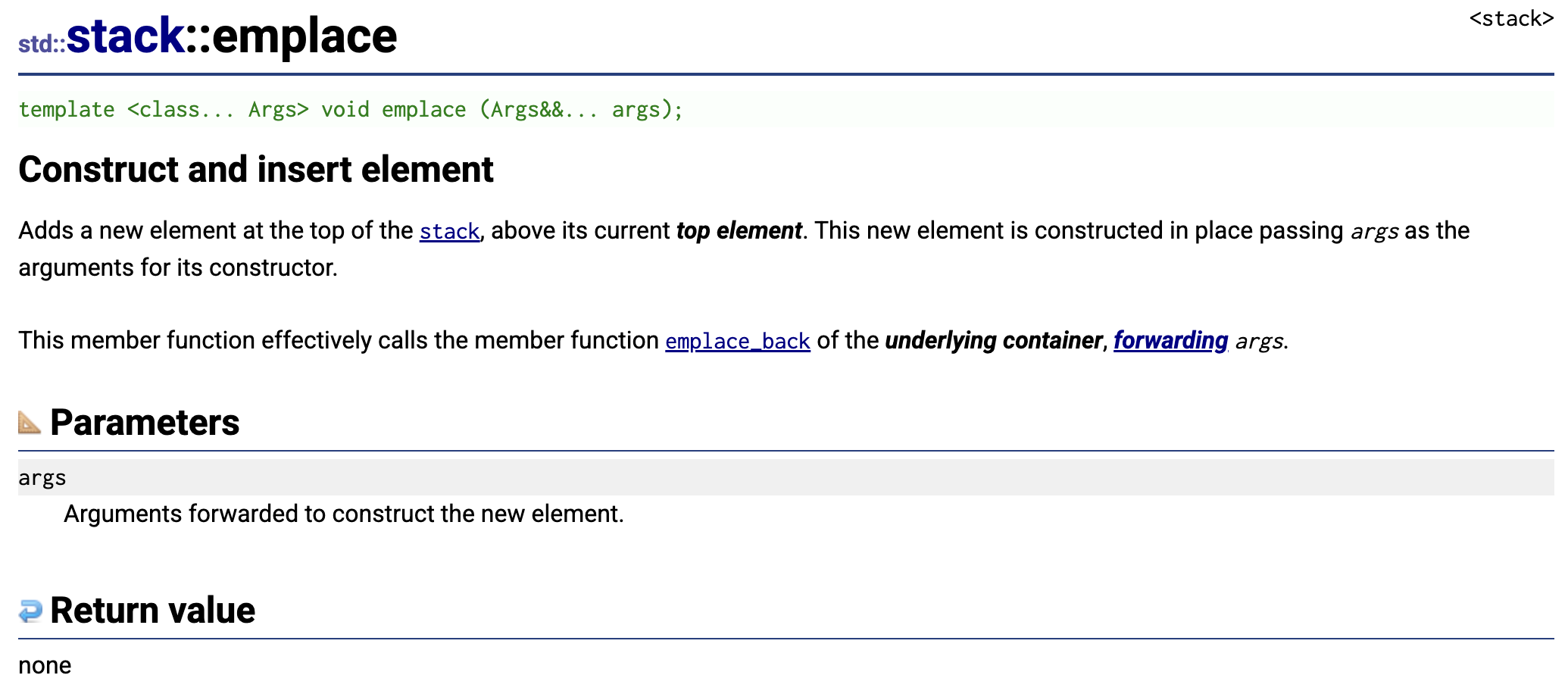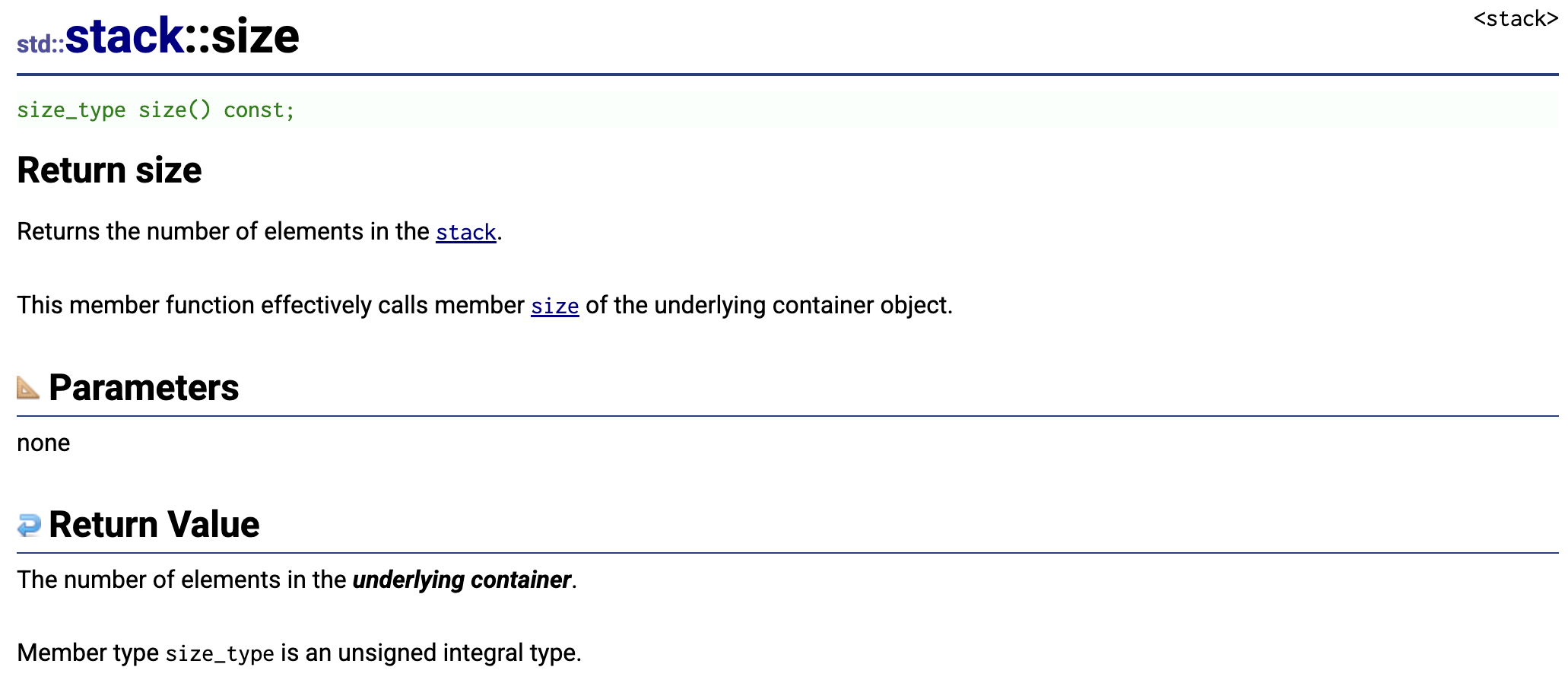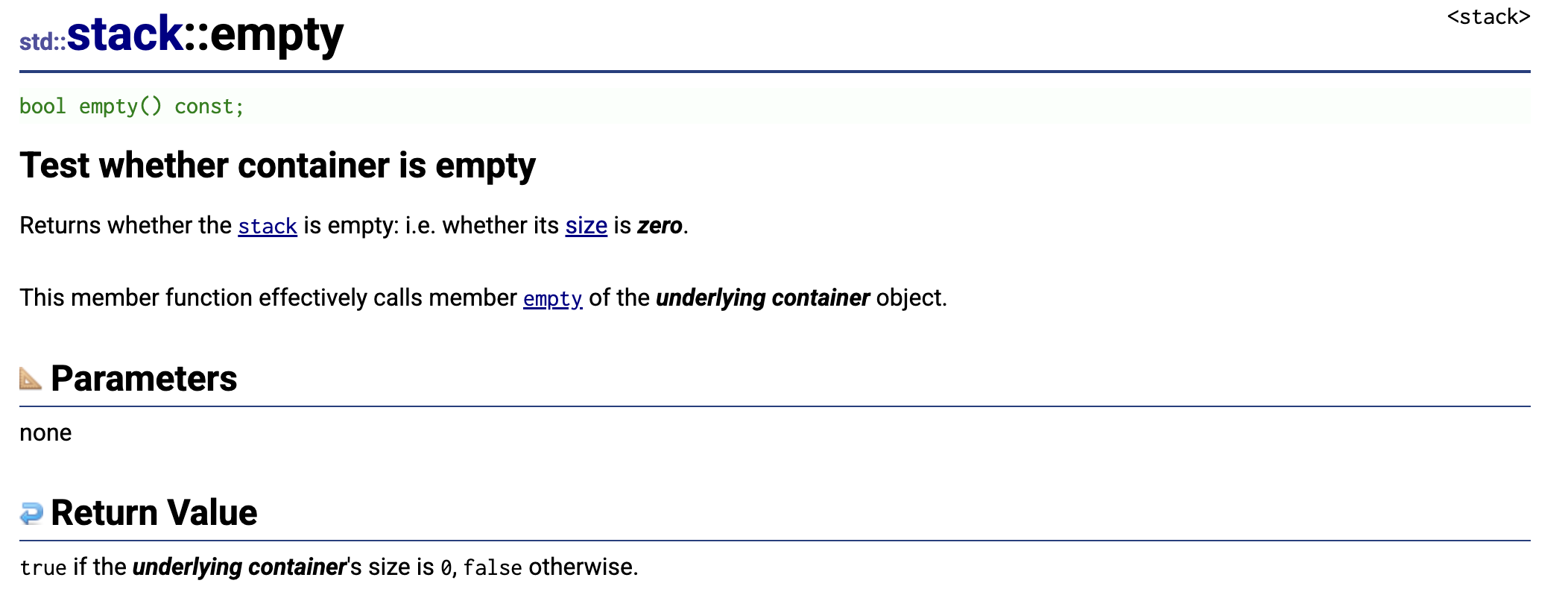 这是C++ 标准库中std::stack::empty成员函数的官方文档说明.