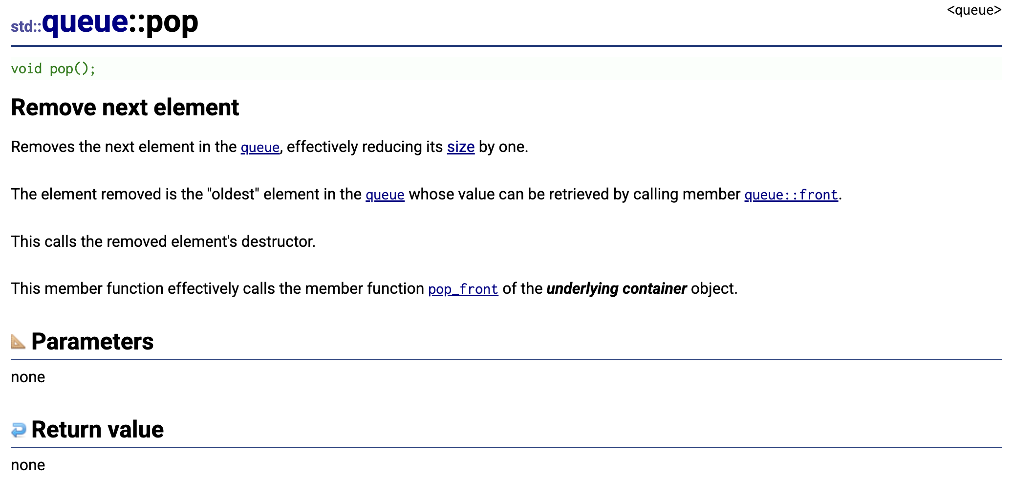 deque,但对外只暴露push(队尾入队)、pop(队首出队)、front(队首)、back(队尾)等 FIFO(先进先出)相关接口。底层