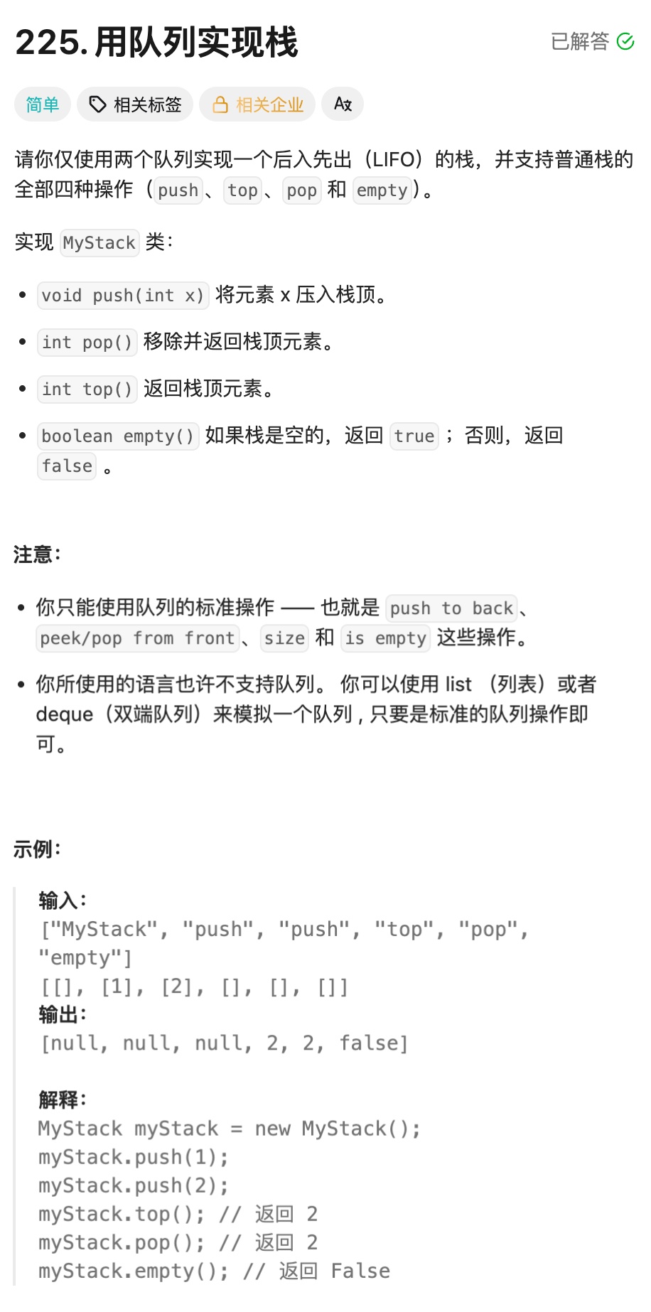 deque),然后只暴露符合栈规则的接口.入栈(