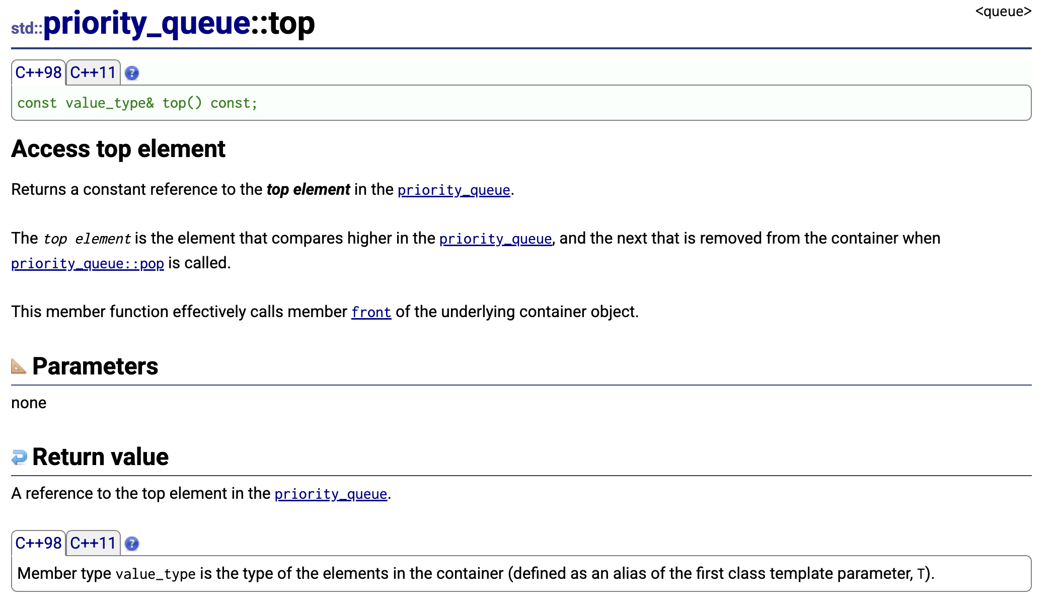 // 访问堆顶(优先级最高元素)