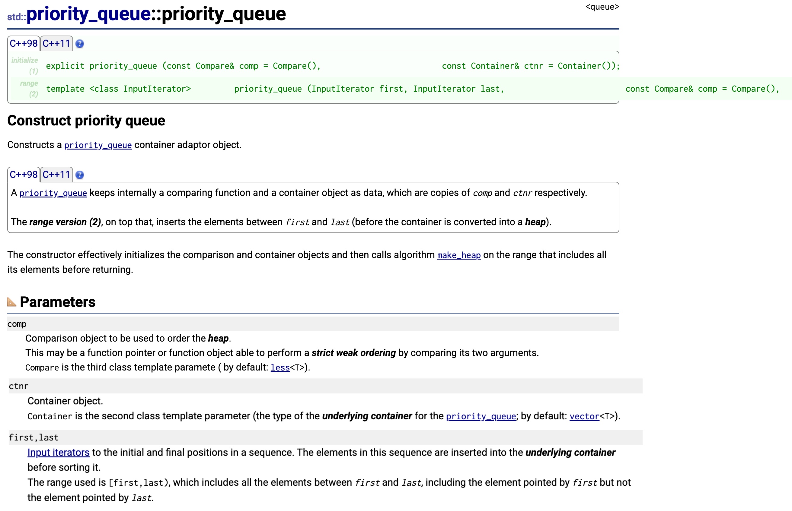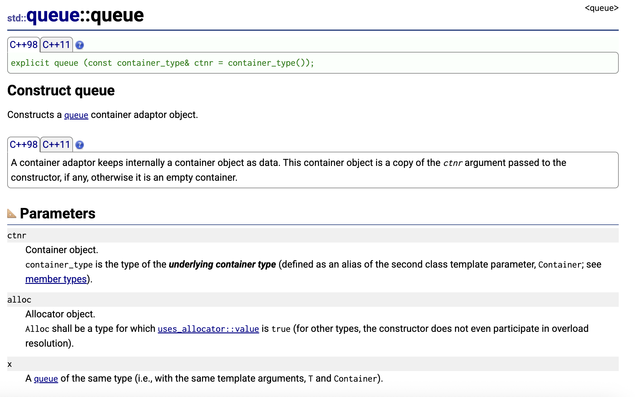 版本兼容 :顶部的C++98和C++11标签说明这个构造函数在 C++98 就已存在,并在 C++11 中继续支持.