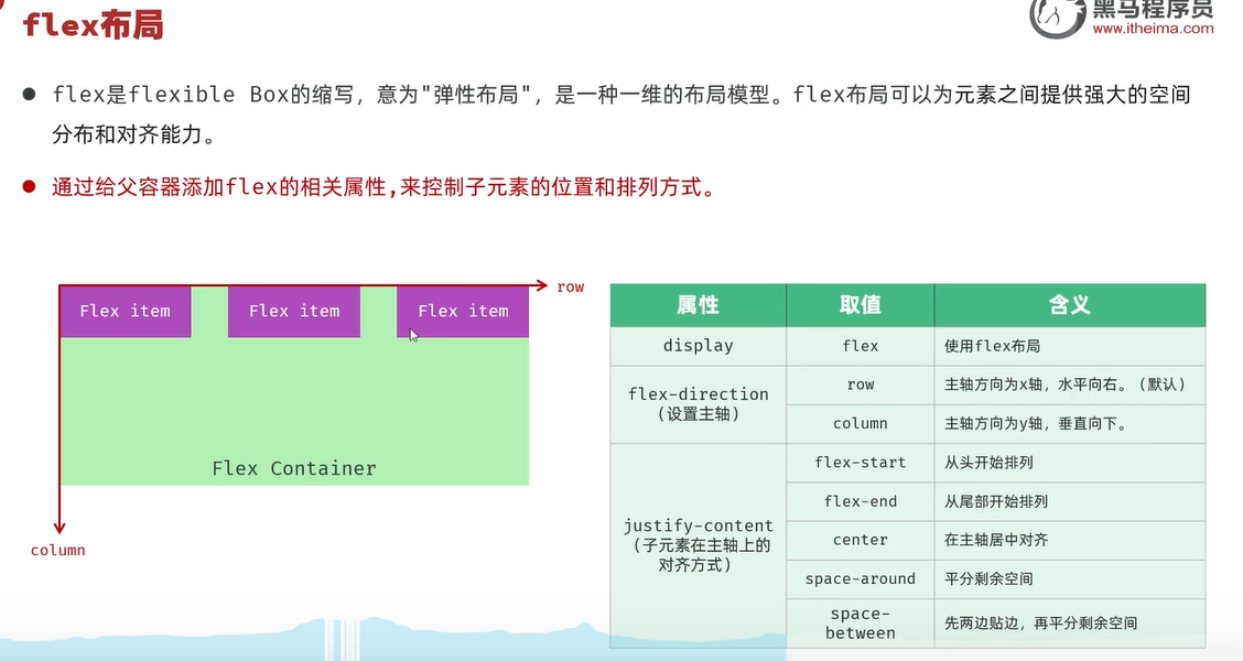 justify-content: space-between; /* 子元素在主轴两端对齐 */