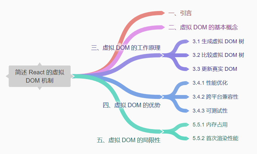虚拟 DOM 是一个抽象的概念,不依赖于具体的 DOM 实现。这使得 React 可以在不同的平台上使用,如 Web、移动端(React Native)等。只需要根据不同平台的特性,将虚拟 DOM 转换为相应的原生视图即可。