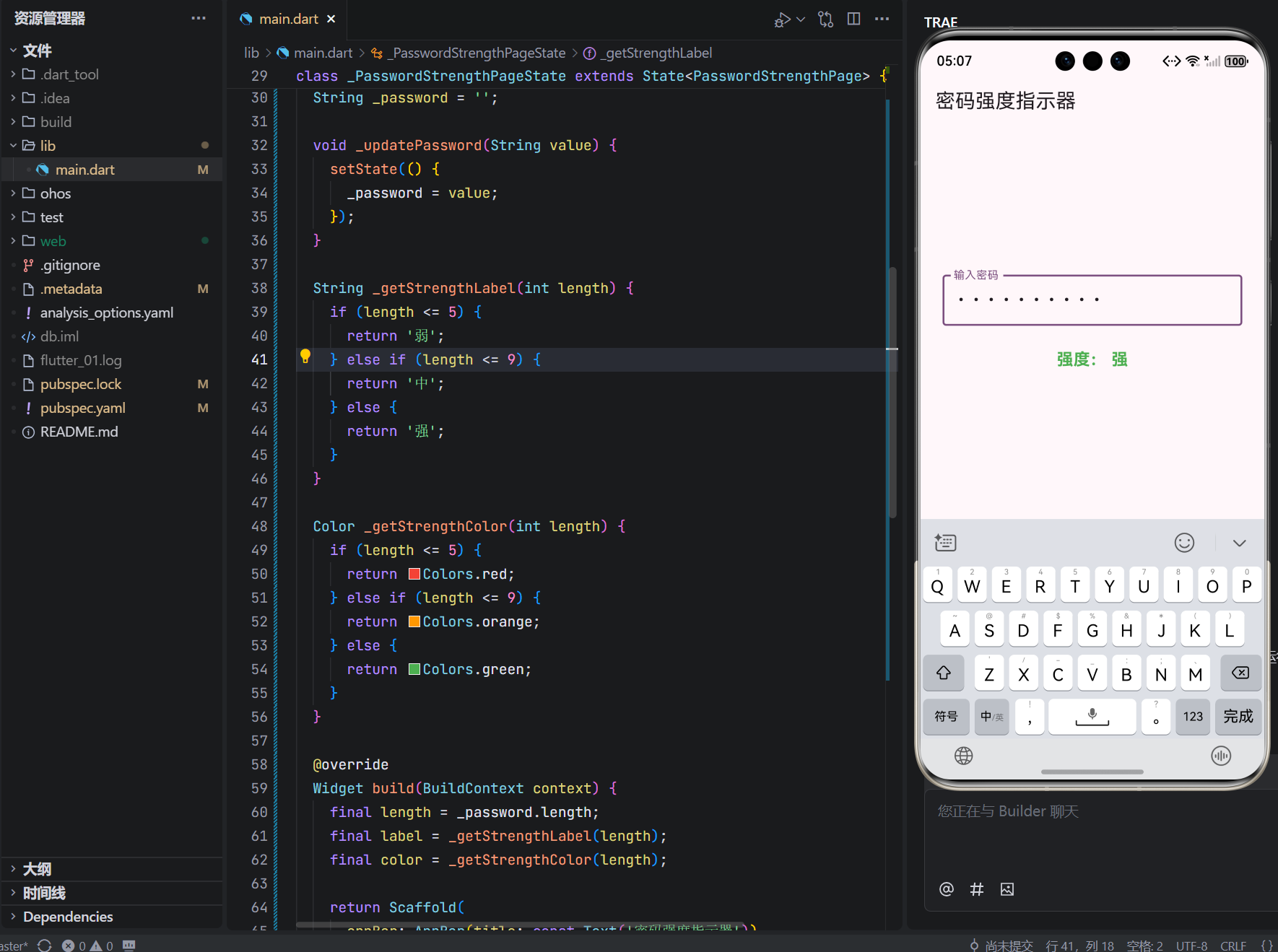 _getStrengthLabel负责文本;_getStrengthColor负责颜色;- 便于未来独立扩展(如增加图标)。