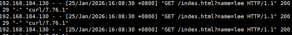 root@haproxy \~\]# vim /etc/haproxy/haproxy.cfg  \[root@haproxy \~\]# systemctl restart haproxy.service #测试环境  #在rs主机中默认是未开启透传功能的  #开启ip透传的方式  #在rs中设定采集透传IP \[root@webserver1\~\]# vim /etc/httpd/conf/httpd.conf  \[root@webserver1 \~\]# systemctl restart httpd #测试效果 \[root@webserver1 \~\]# cat /etc/httpd/logs/access_log  ### 四层IP透传 #环境设置 #在RS中把apache停止   #部署nginx webserver1   webserver2   #测环境  #启用nginx的四层访问控制 webserver1    webserver2   #测试 这里报错是正常的,出现下述报错标识nginx只支持四层访问  #设定haproxy访问4层   \[root@haproxy \~\]# systemctl restart haproxy.service #测试四层访问 #设置4层ip透传 \[root@webserver1\~\]# vim /etc/nginx/nginx.conf \[root@webserver2\~\]# vim /etc/nginx/nginx.conf  \[root@webserver1 \~\]# systemctl restart nginx.service \[root@webserver2 \~\]# systemctl restart nginx.service #测试  \[root@webserver1 \~\]# cat /var/log/nginx/access.log 192.168.0.100 - - \[26/Jan/2026:10:52:40 +0800\] "GET / HTTP/1.1" "172.25.254.1"200 19 "-" "curl/7.65.0" "-" 192.168.0.100 - - \[26/Jan/2026:10:53:49 +0800\] "GET / HTTP/1.1" "172.25.254.1"200 19 "-" "curl/7.65.0" "-" 192.168.0.100 - - \[26/Jan/2026:10:53:50 +0800\] "GET / HTTP/1.1" "172.25.254.1"200 19 "-" "curl/7.65.0" "-"