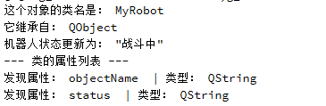 qDebug() << "--- 类的属性列表 ---";