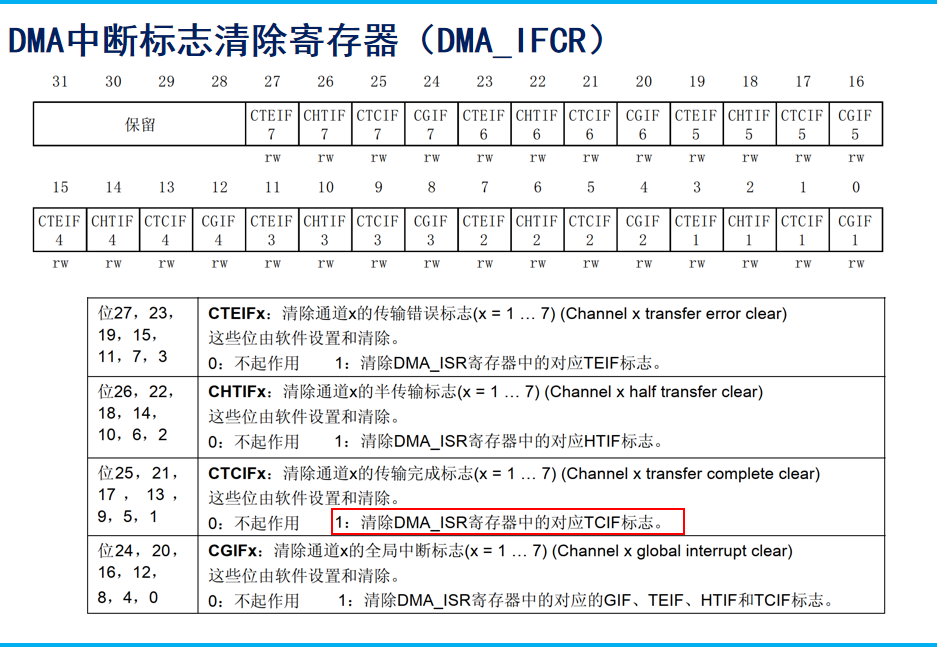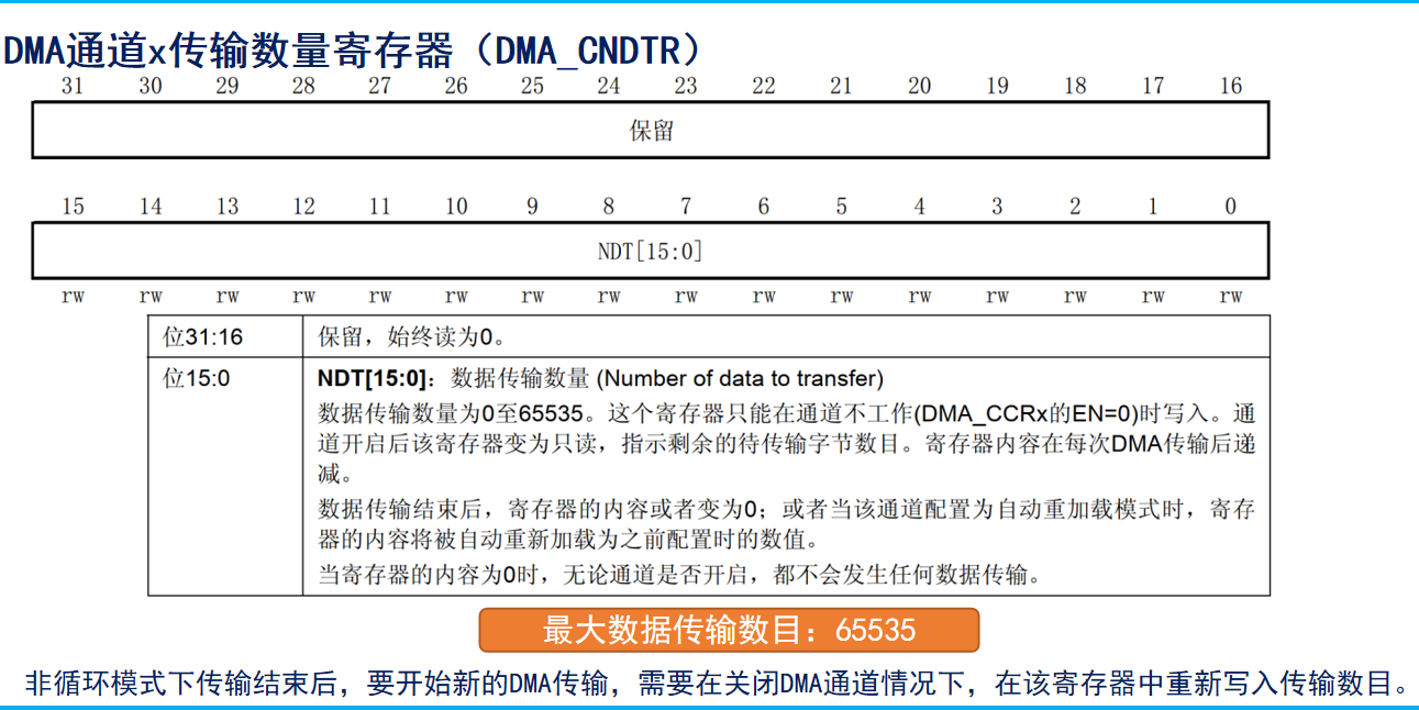 | __HAL_DMA_DISABLE(...) | DMA_CCR(EN) | 失能DMA外设 |