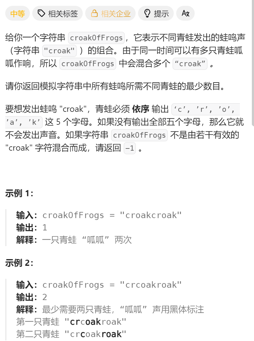 青蛙需要叫出croak就算叫了一声,并且叫声必须按顺序出现。