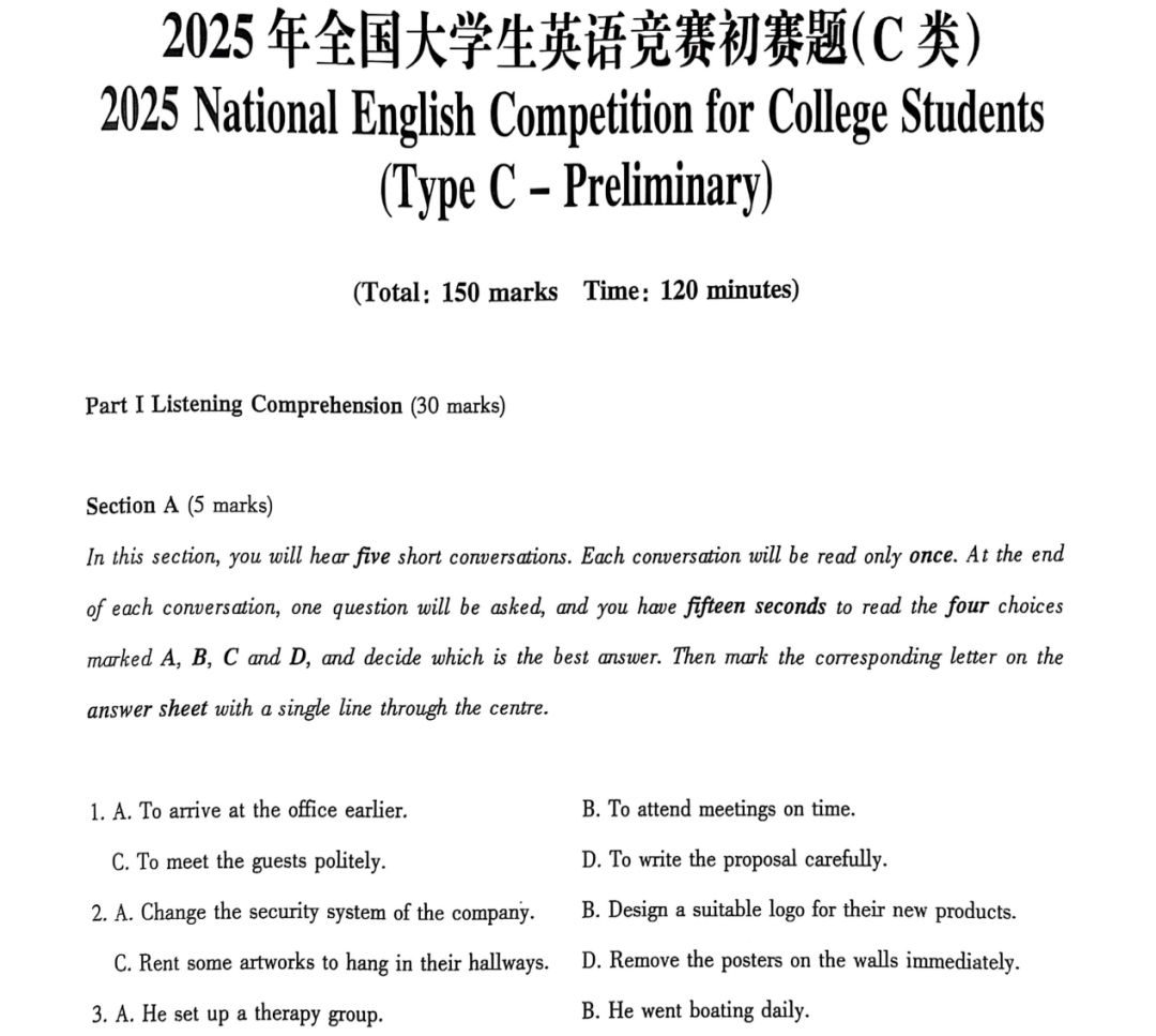 2026年全国大学生英语竞赛(NECCS)报名时间为2025年12月17日--2026年3月13日,全国初赛时间为2026年4月12日!小为整理了2012-2025年全国大学生英语竞赛A、B、C和D类历年真题及答案解析,PDF电子版!