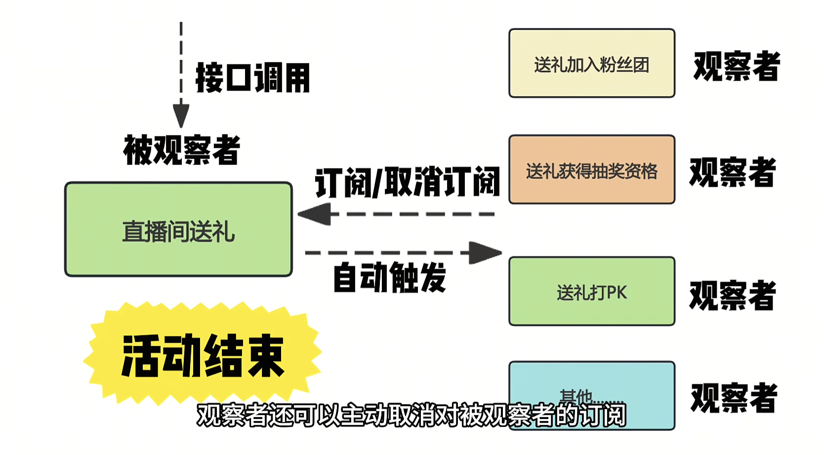 Subject (主题/被观察者) -> 直播间送礼服务 (GiftService)
