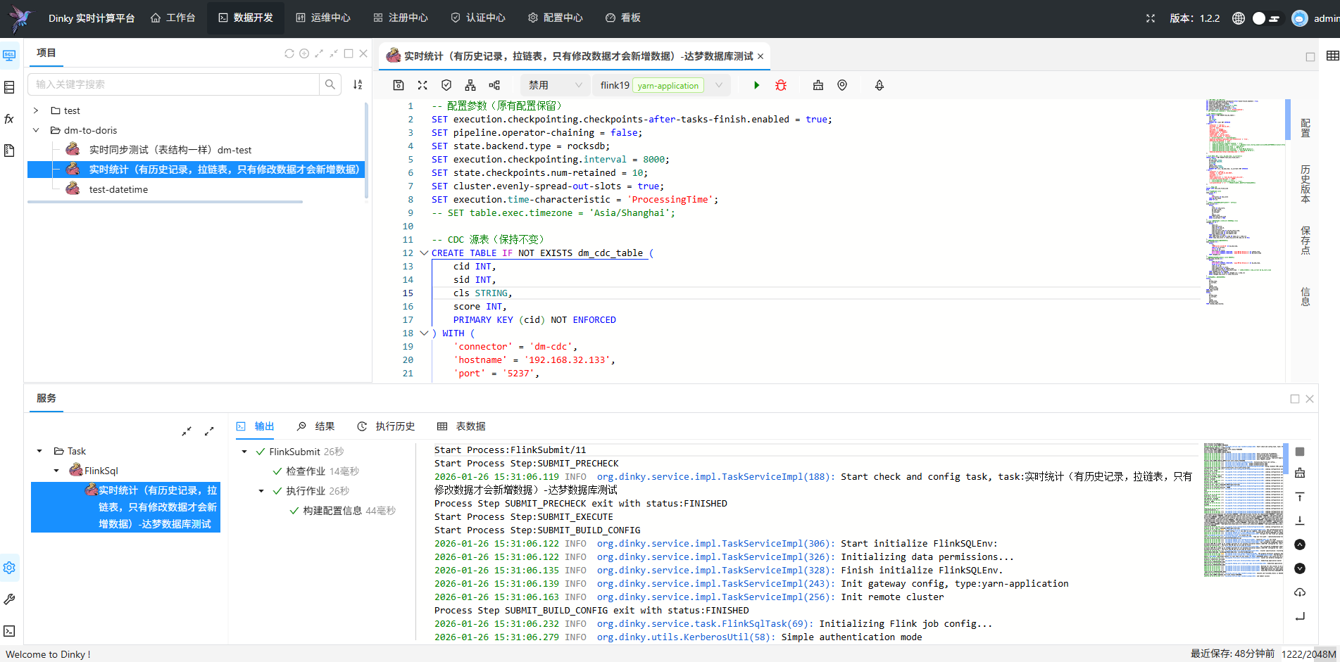 Dinky+Flink SQL达梦数据库实时同步到Doris简单实现