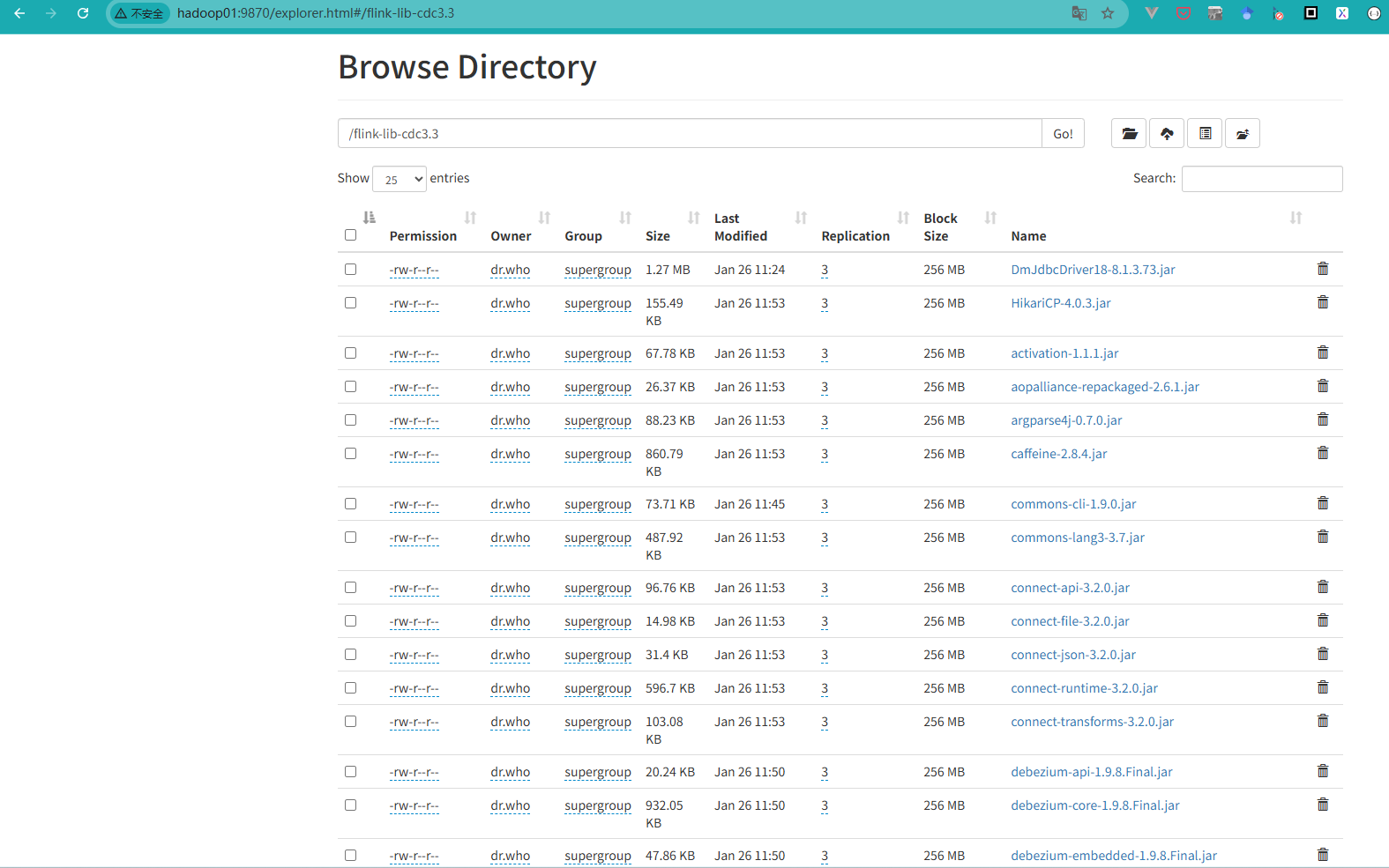 把你的flink cdc 3.3.0相关的包和达梦连接器上传到这个目录下。