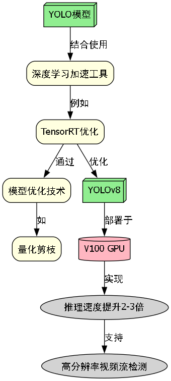 在实际部署中,YOLO模型通常与深度学习加速工具(如TensorRT)结合使用,通过量化剪枝等技术进一步优化模型性能。例如,YOLOv8经过TensorRT优化后,在V100 GPU上的推理速度可以提升2-3倍,这使得它能够在高分辨率视频流中保持稳定的检测性能。