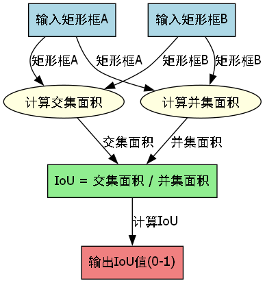 IoU的计算公式非常直观:它是两个矩形框交集面积与并集面积的比值。这个值介于0和1之间,越接近1表示两个框的重合度越高,检测效果越好。📐
