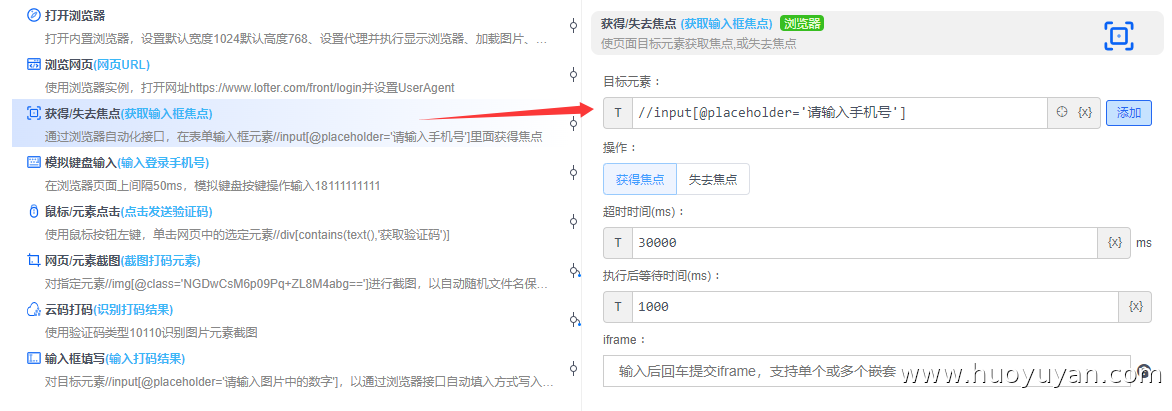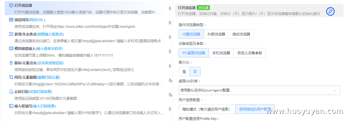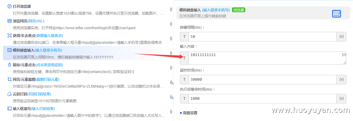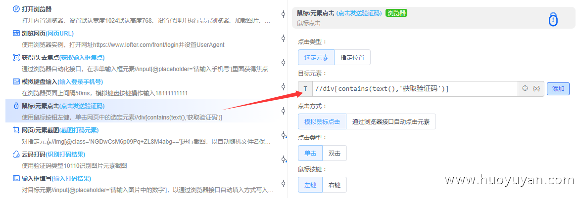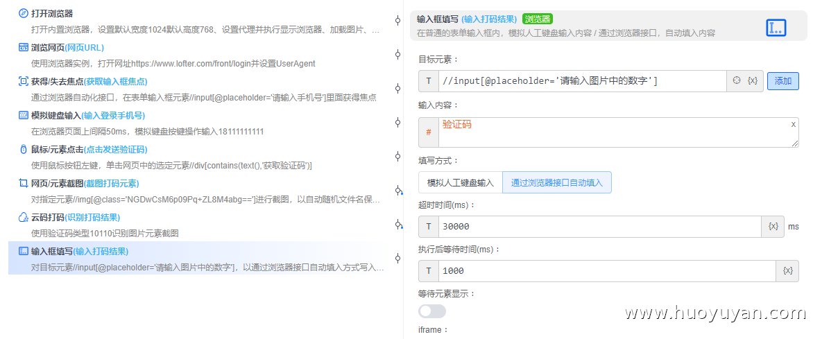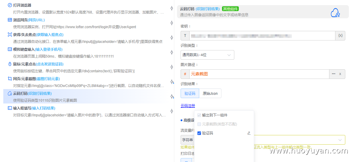 本案例基于火语言 RPA 实现英数图形验证码的自动校验登录,通过脚本替代人工操作,完成 "打开浏览器→ 访问登录页→ 输入手机号→ 触发英数验证码→ 截图识别→ 回填验证码" 的全流程自动化。