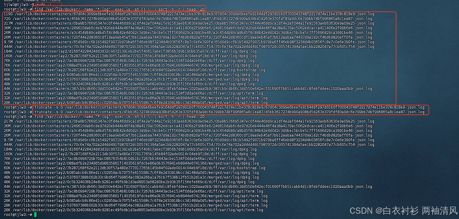 find /var/lib/docker/ -name "*.log" -exec ls -sh {} \; | sort -h -r | head -20