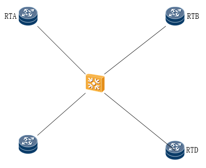 5.如图所示的广播网络中,OSPF运行在四台路由器上,且在同一区域,同一网段OSPF会自动选举一个DR,多个BDR,从而达到更好的备份效果。( )