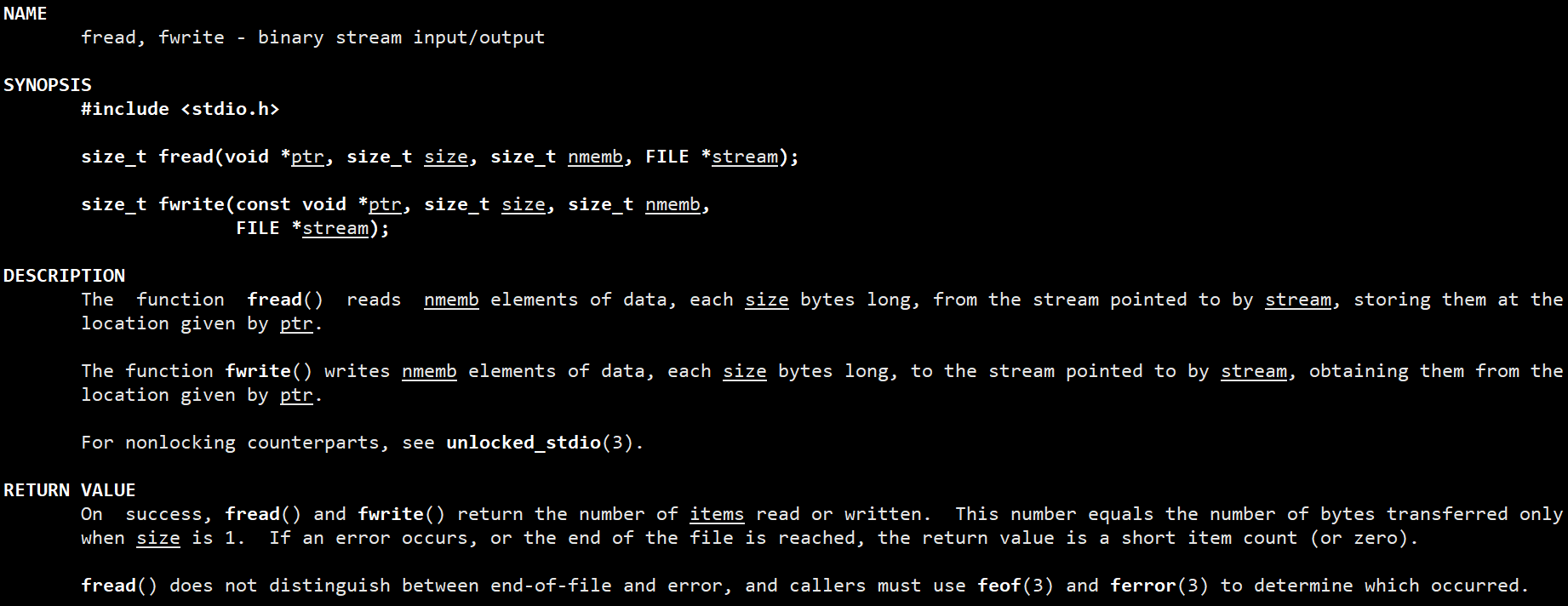 size_t ret1 = fwrite(str, len, 1, stdout); // 返回:写入的块数
