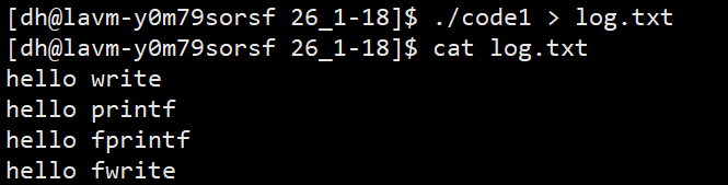 // 同样的代码,但执行时重定向:./code1> log.txt