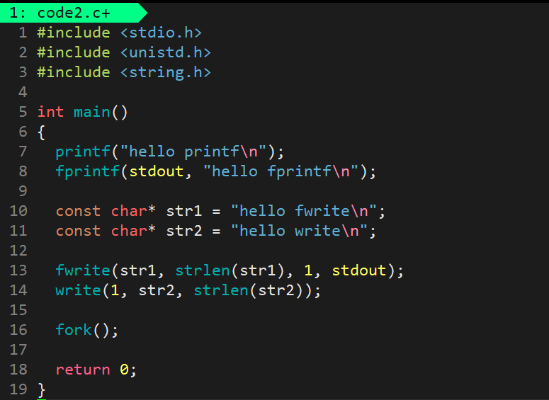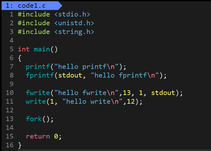 fprintf(stdout, "hello fprintf\n"); // 写入用户缓冲区