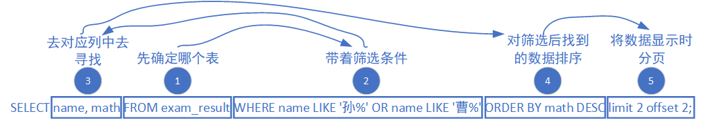 -> LIMIT 5; -- 放在最后,限制返回的行数