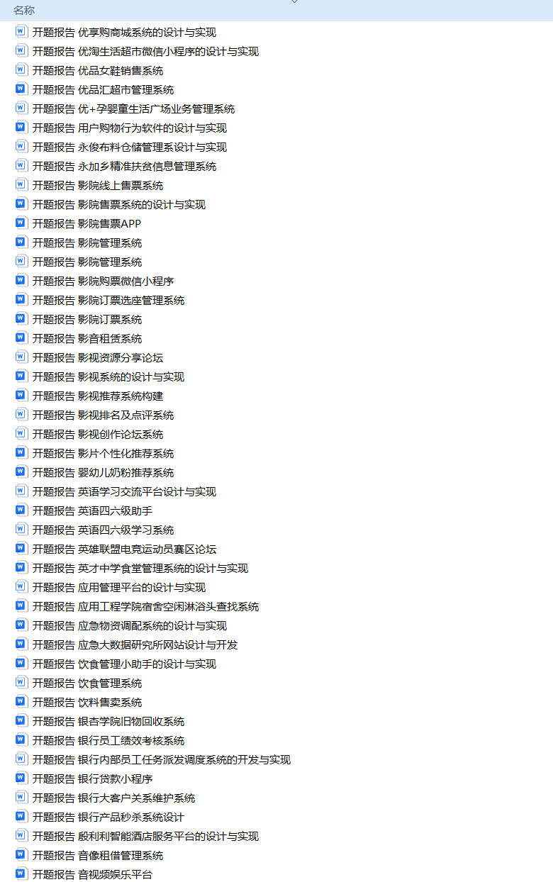 以上是H同学的毕业设计答辩过程,如果你现在还没有参加答辩,还是开题阶段,已经选好了题目不知道怎么写开题报告,可以下面找找有没有自己符合自己题目的开题报告内容,列表中的开题报告都是往届真实的开题报告可参考