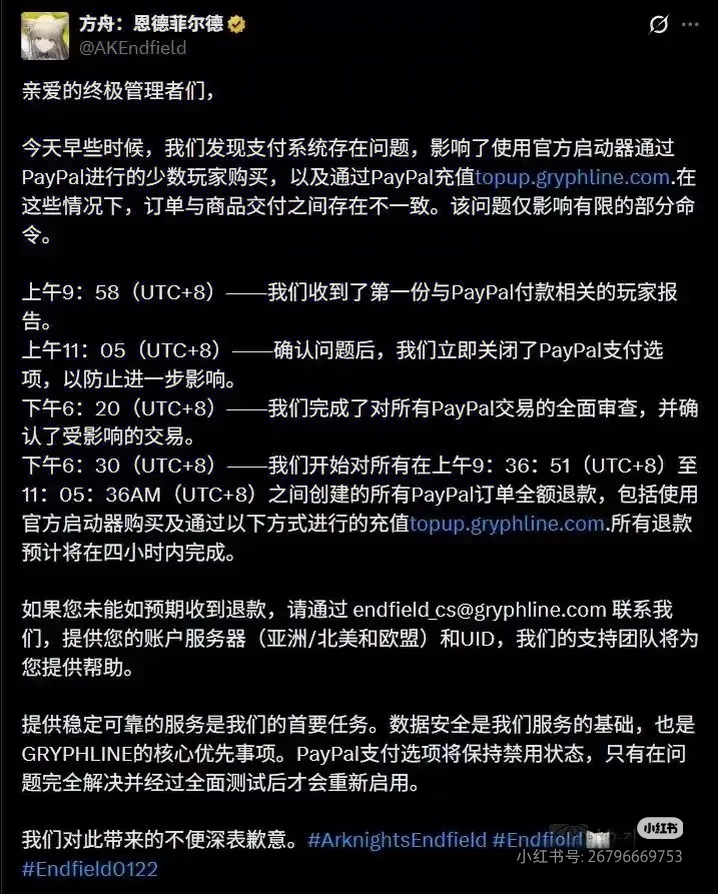 近日,随着《明日方舟:终末地》(以下简称"终末地")正式上线公测,一场堪称灾难级的支付技术事故也随之在海外出现。