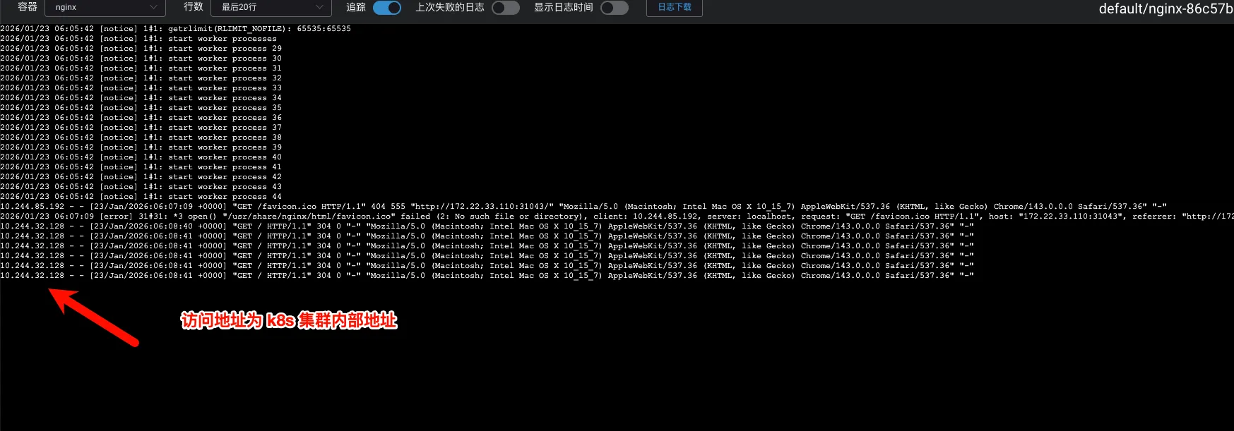 集群内访问会负载到任意就绪后端,可跨节点。目标是任何节点都能访问