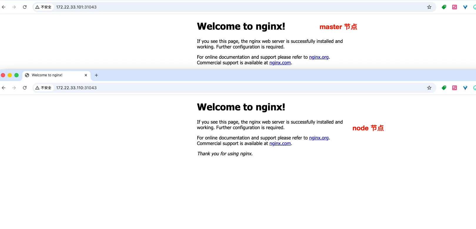 我们以一个案例:K8s中运行一个Nginx ,以 NodePort 暴露